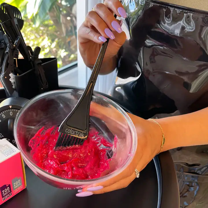 Colortrak Precision Angled Firm Bristles Brush delivers exceptional control and accuracy for detailed coloring, root touch-ups, and precision painting.