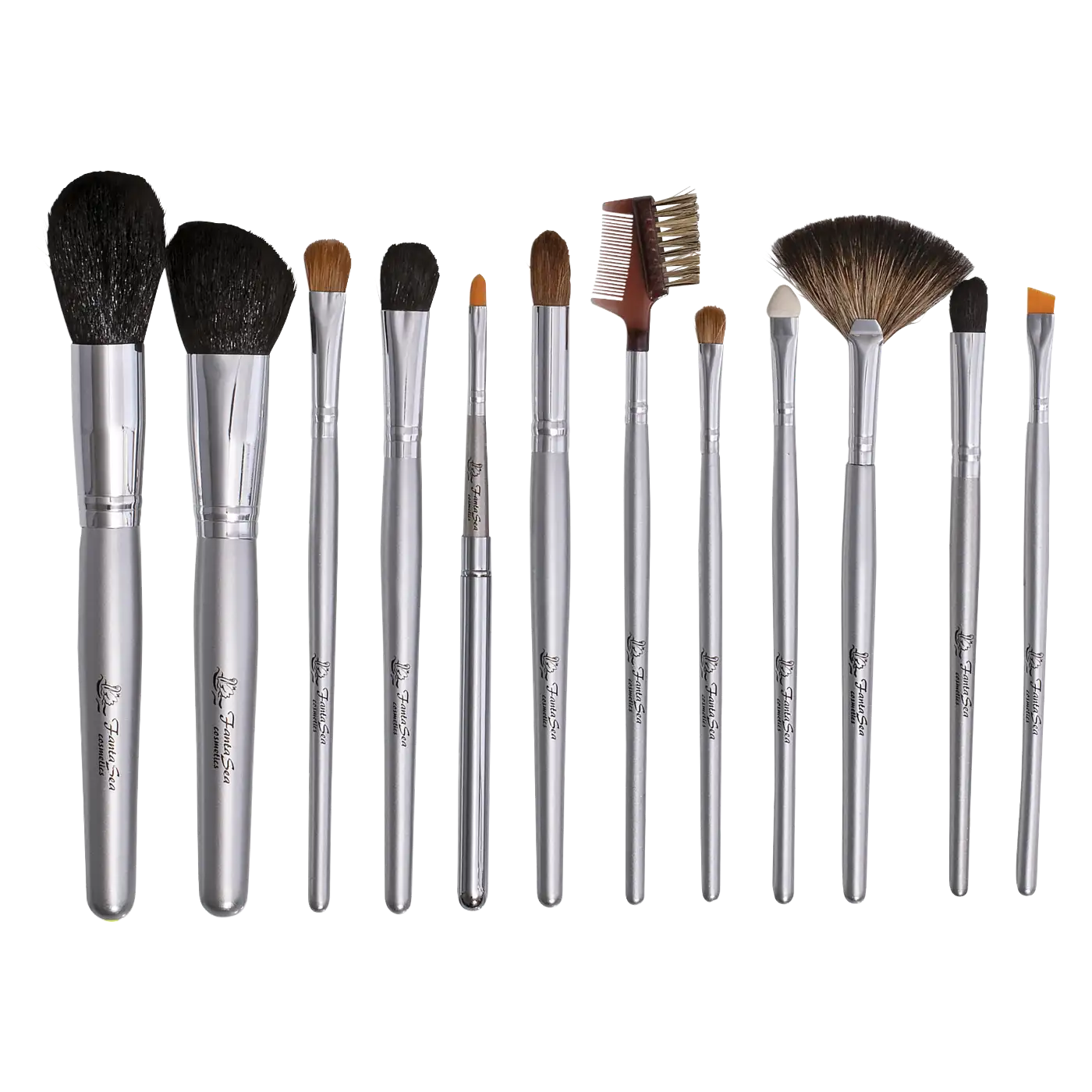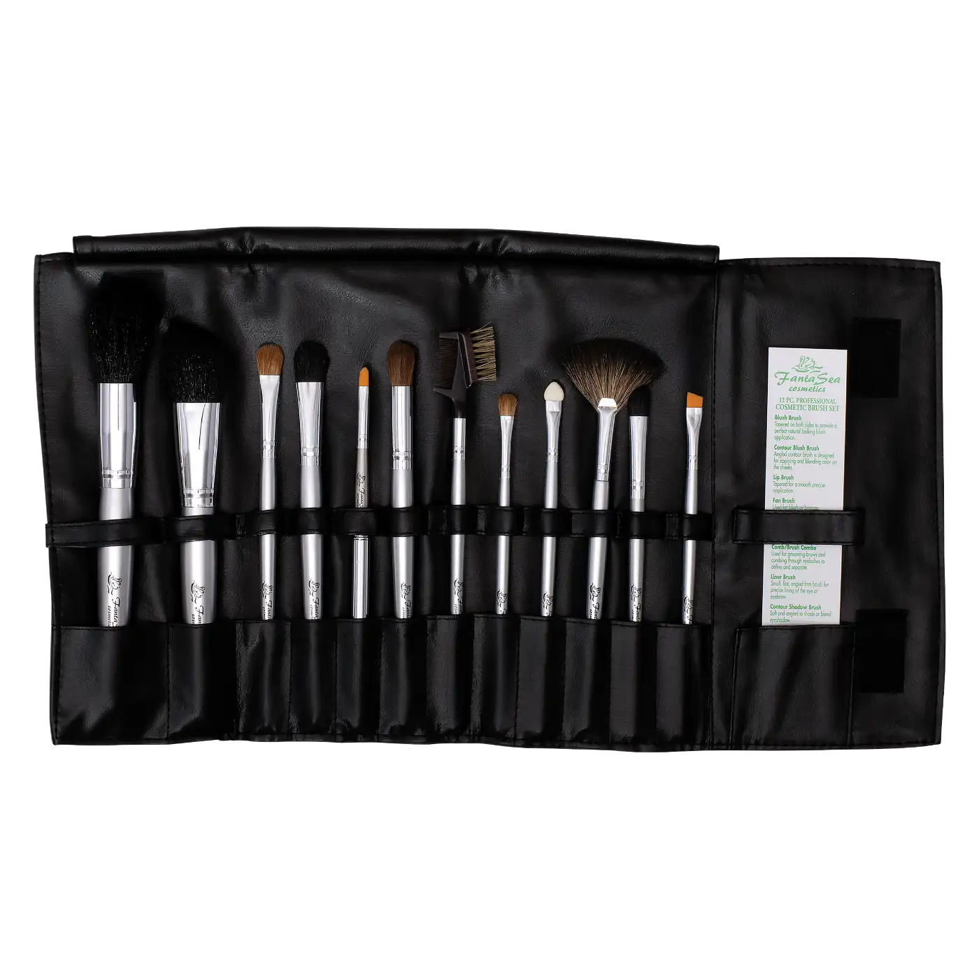 FantaSea Makeup Brush Set with Case 12 pc. is a professional-quality collection designed to support flawless makeup and treatment applications. Featuring hand-tied bristles and durable chrome ferrules, this versatile set delivers precision, softness, and reliability for spa and beauty professionals.