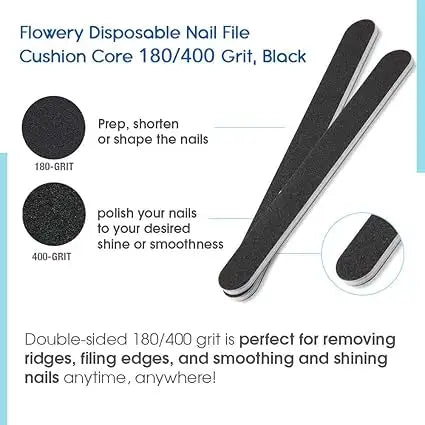 Flowery Cushion Core Nail File 180/400 Grit, Black - 100 Ct