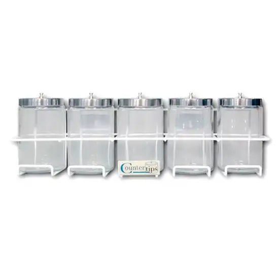 Provides storage for products such as bandages, gauze, cotton, applicators, and tongue depressors. 7” x 4-1/4” flint glass with stainless steel lids. Not autoclavable. Brushed Stainless steel lids. Unlabeled.
