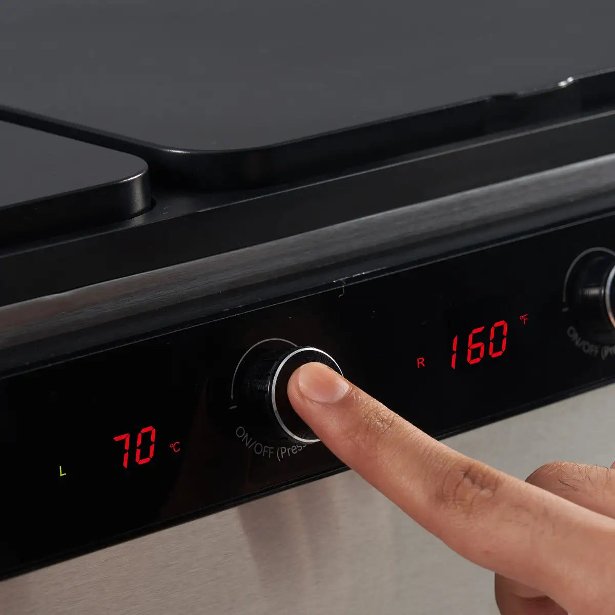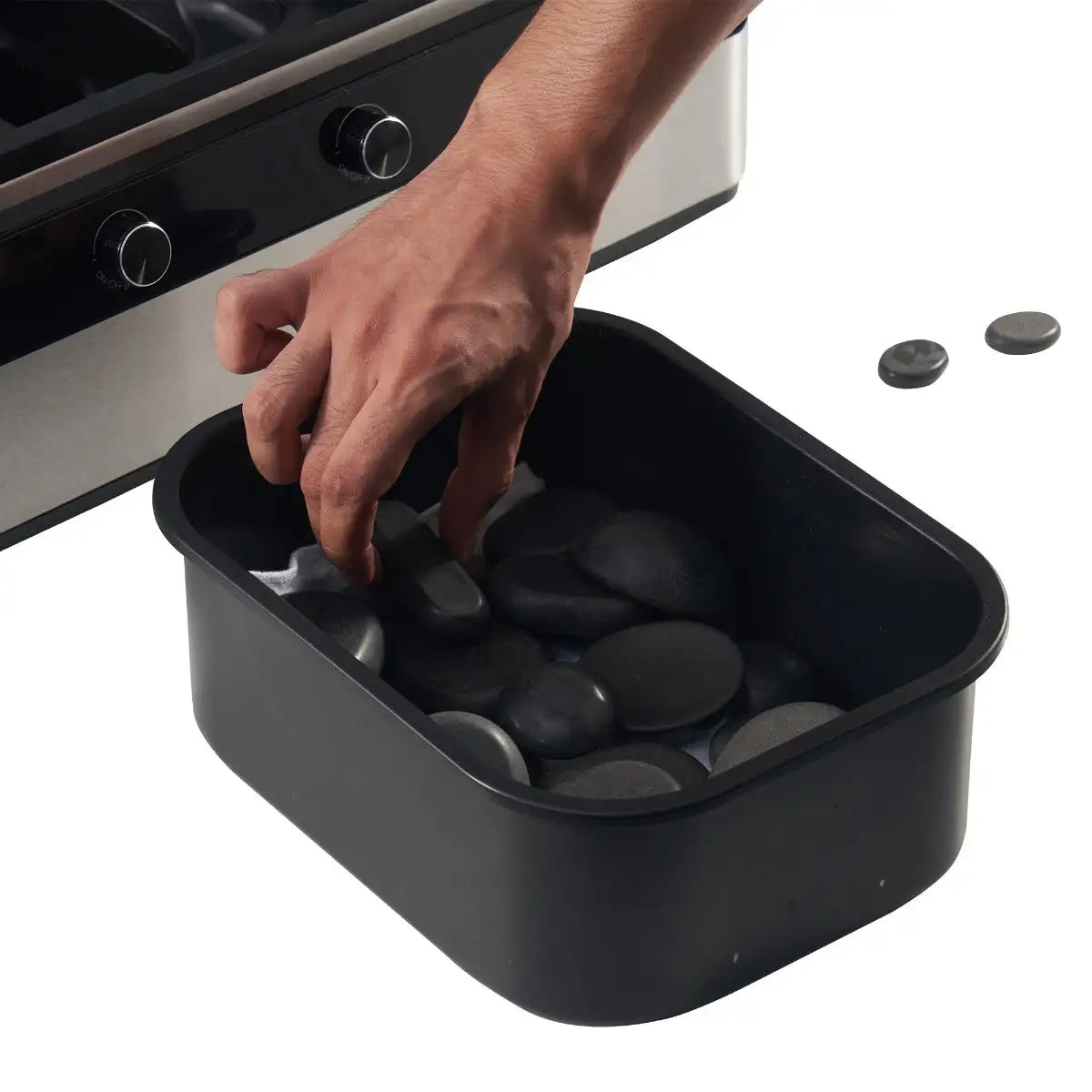 Packed with These EXCLUSIVE Features! •Two heated massage stone zones include 500W heating plates each. •Three massage oil bottle zones includes 50W heating pipes each. •An additional silicone steam liner for steam cooking. •Flexibility to independently control and adjust the heating. •15 Minute Rapid Heating (77°F to 115°F). •Celsius(℃) and Fahrenheit(°F) convertible. •Dimensions: 24 x 15 x 8 inch