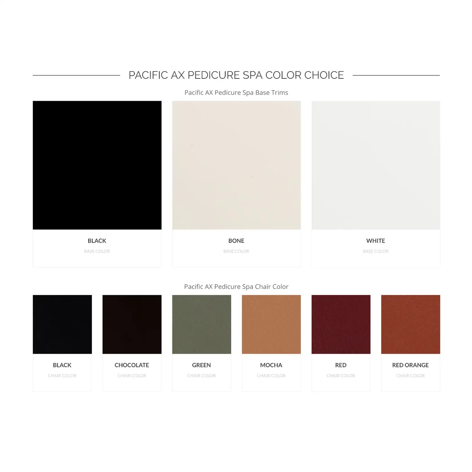 With an eye for style and a feel for craftmanship, we have created our Pacific Whirpool Spa line for today's stylish salons and spas. The Pacific AX model is availalble in several beautiful color combinations and offers thoughtful, functional design features that enhance the pedicure experience. Please note this item could take up to 3 weeks to fully process and ship.
