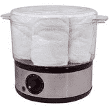 Portable and lightweight towel steamer is ideal for salons, spas, and barbers. Great for facials, manicures, pedicures, massages and hot shaves. Features a stainless steel base, power indicator light, a 60 minute timer, 15 minute heat-up, and automatic shut-off. Holds up to six 8" x 24" terry cloth towels, which are included. Total unit measures 7-3/4"H x 7" Diameter.