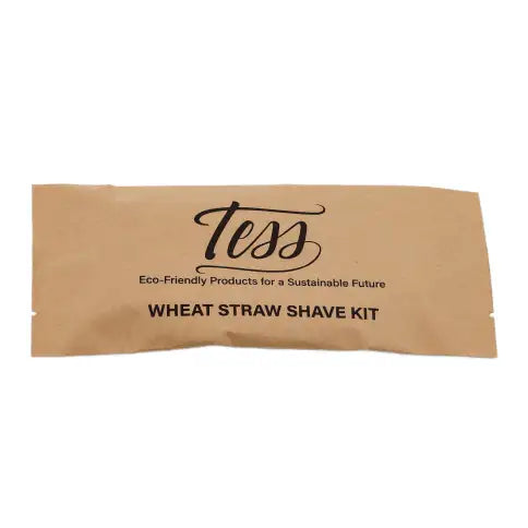 The Tess Wheat Straw Shave Kit is a thoughtfully designed solution for self-grooming needs, emphasizing sustainability. Each kit comes with a wheat straw triple blade razor along with an 8g packet of benzol-free shave cream in a kraft paper flow wrap. Each shave kit comes individually packaged in an FSC-certified kraft paper sachet.