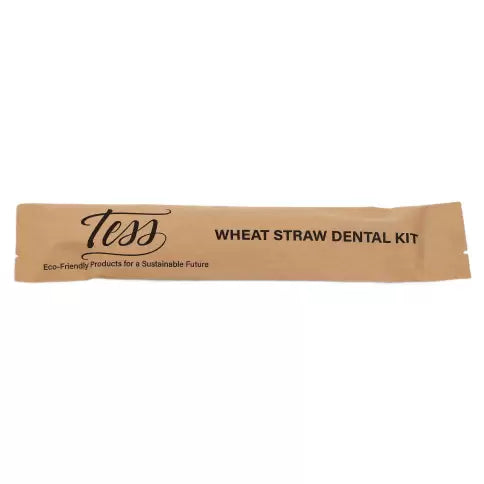 Our Tess Wheat Straw Dental Kit is an eco-friendly and sustainable oral care solution. The toothbrush handle is made from wheat straw, a natural material derived from leftover wheat stalks after harvest. Your guests will be delighted with a greener smile and a cleaner earth. Kit is complete with (1) wheat straw toothbrush and (1) 3g mint flavored toothpaste in a kraft paper flow wrap. The wheat straw dental kits are packaged in an FSC-certified kraft paper sachet.